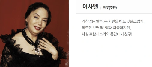 김수미는 독특한 설정의 시트콤 안녕 프란체스카에서 뱀파이어 가족의 이웃으로 출연해 코믹한 캐릭터로 인기를 끌었습니다.