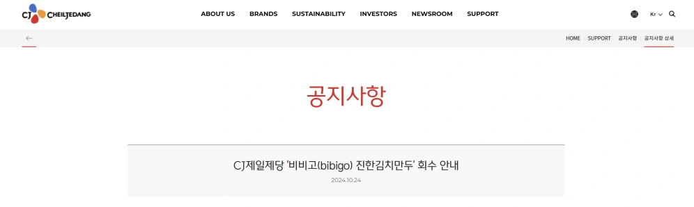 이번 회수 제품과 관련해 CJ제일제당의 공식 홈페이지에도 회수 안내 게시물이 게시되었으며, 궁금한 사항은 CJ제일제당의 고객행복센터로 문의하면 반품 절차에 대해 자세히 안내받을 수 있습니다.
