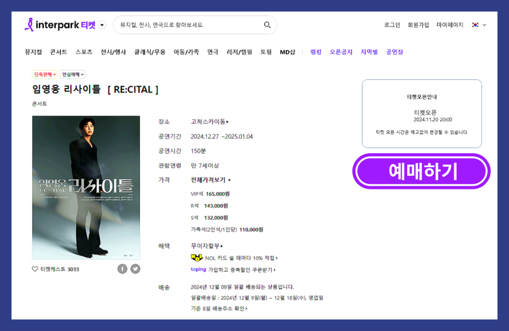 - 예매 사이트 : 인터파크 티켓