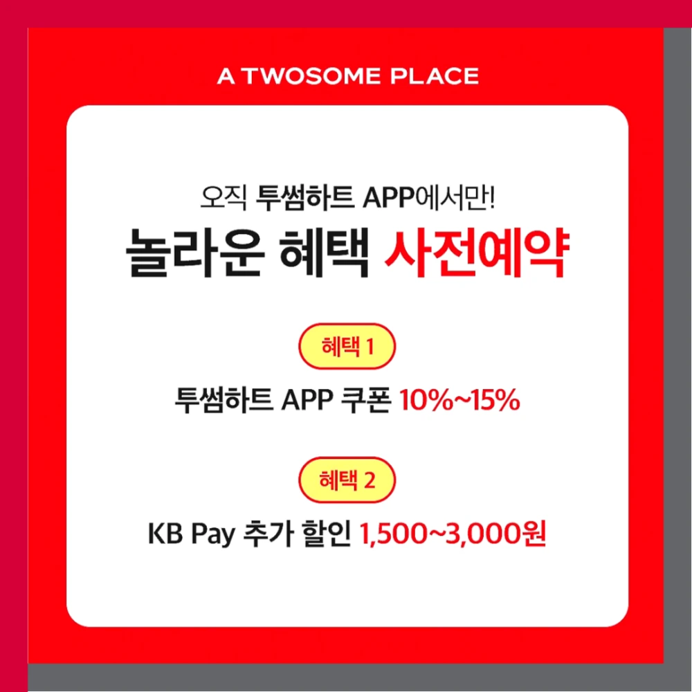 A3. 네, 투썸하트 앱 할인과 KB Pay 추가 할인은 중복 적용이 가능합니다. 다만 기타 프로모션 쿠폰과는 중복 적용이 제한될 수 있으니, 더 자세한 내용은 매장 또는 공식 홈페이지를 참고해 주시면 되겠습니다.