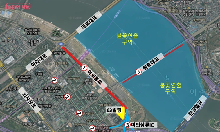 축제 당일 여의도 한강공원 일대는 안전을 위해 서울세계불꽃축제 교통 통제가 이루어질 예정이므로, 가급적 대중교통을 이용하여 방문하는 것이 더 편리할 것으로 예상됩니다.
