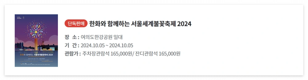 ★ 현재 확인해 보니 2024 서울세계불꽃축제 티켓이 모두 매진된 상황입니다.